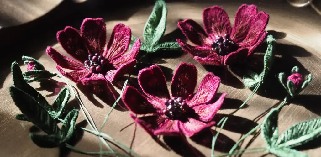 ひとつひとつ丁寧に仕上げた立体刺繍のアクセサリーをつくっています。花や葉、自然に生きるもの、また形にならないニュアンスを小さなかたちに、糸でそっと息づかいを添えて、日々の装いに小さな彩りを届けています。制作の背景や、糸の奥にある小さな物語は、Blog にて少しずつ綴っています。 atelier eni の世界を、どうぞゆっくりお楽しみください。