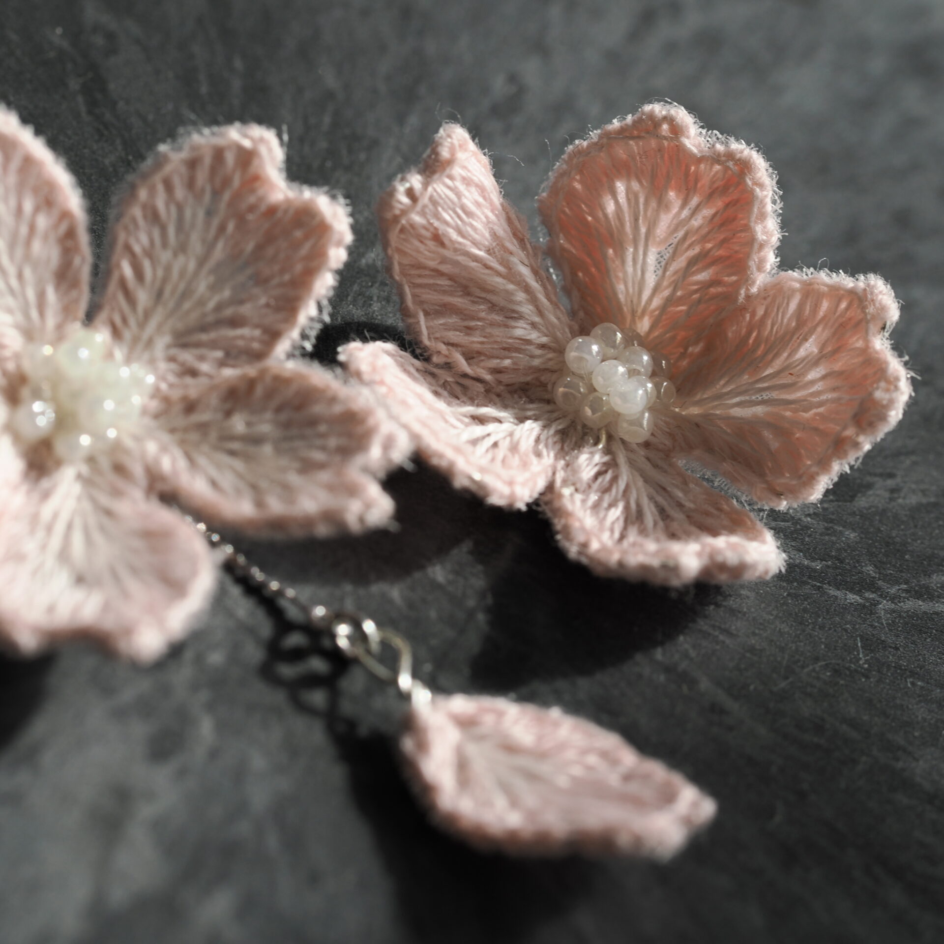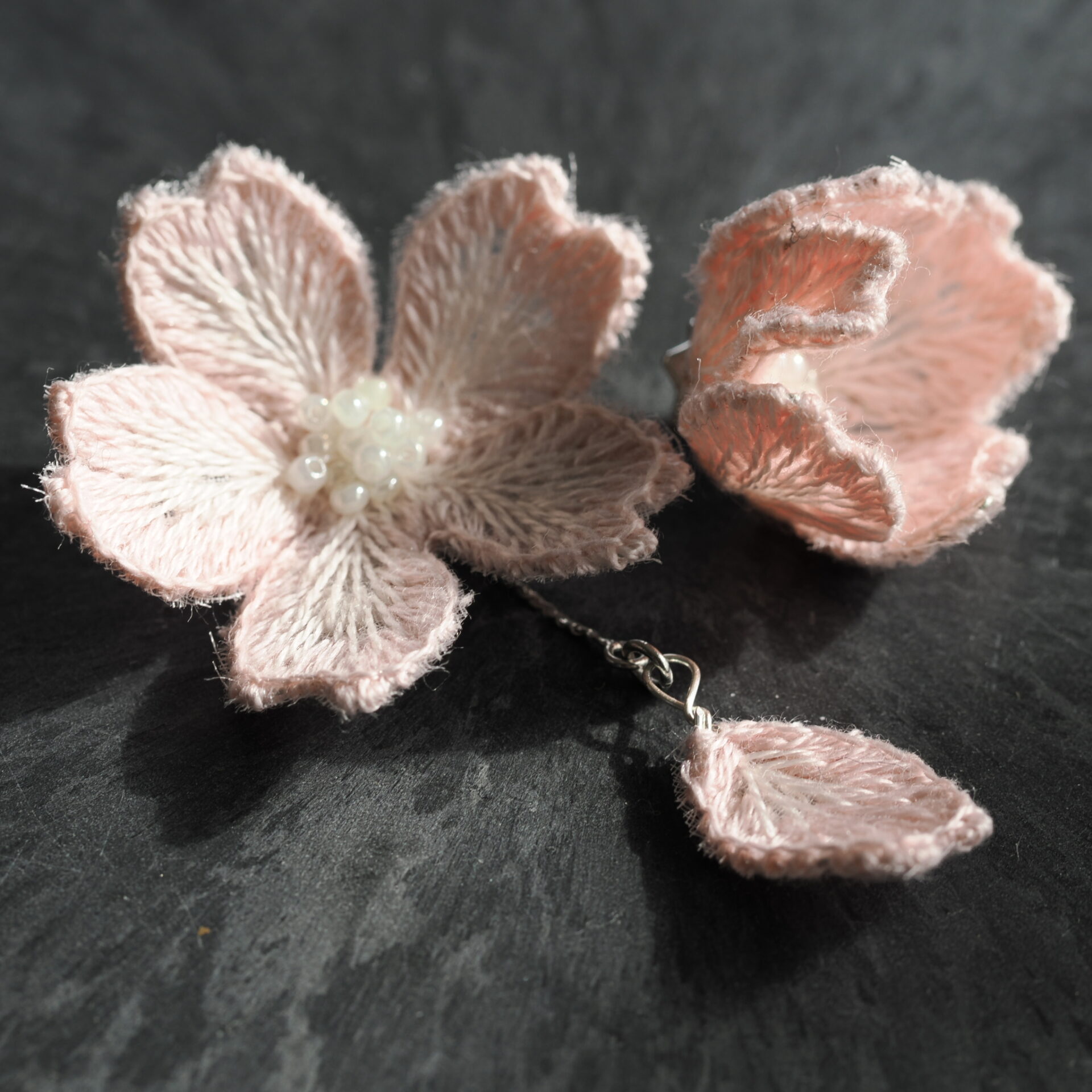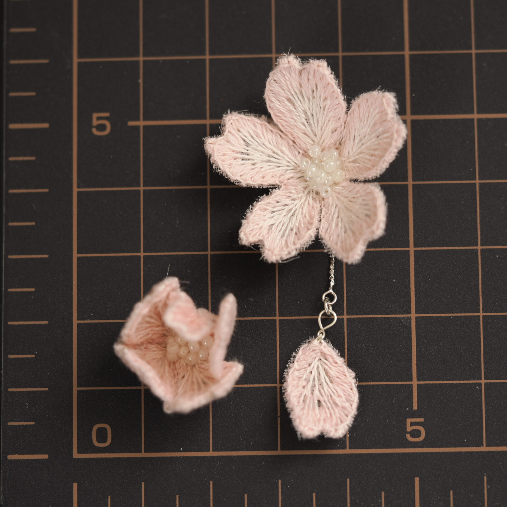 立体刺繍の耳飾りです。