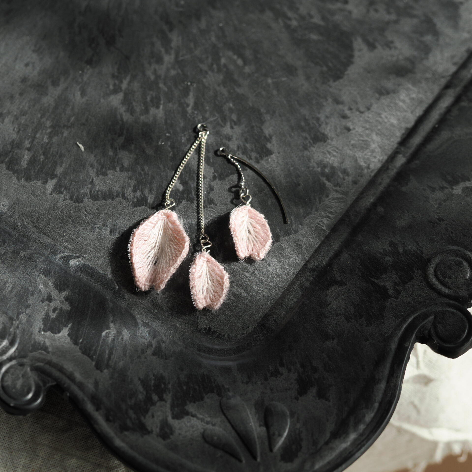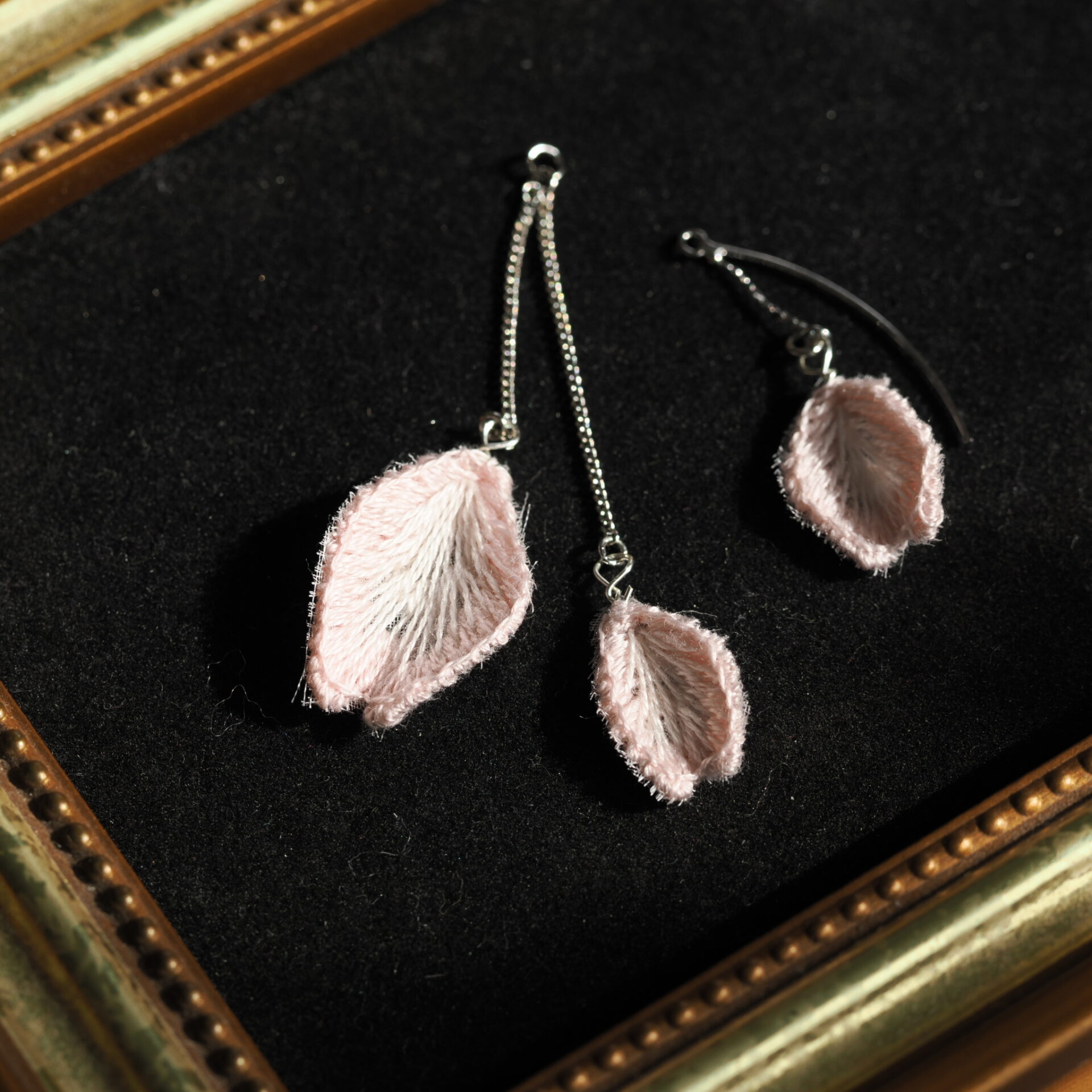 立体刺繍の耳飾りです。